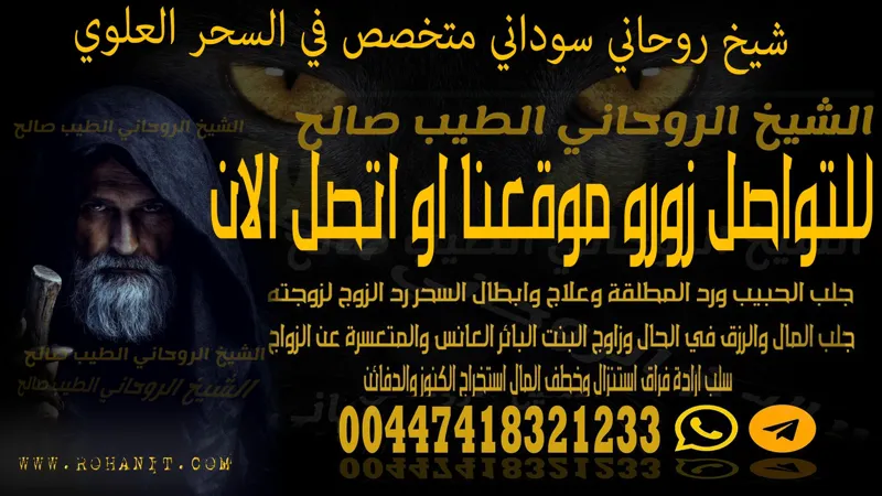 - شيخ روحاني سوداني متخصص في السحر العلوي لعلاج الحسد