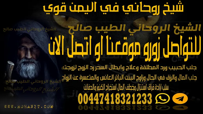 افضل واقوى شيخ روحانى في الوطن والخليج العربي في جميع الاعمال الروحانية-جلب الحبيب-رد المطلقة-موافقة الأهل عي شريك الحياة-علاج وفك اخطر انواع السحر السفلي الأسود-طلاق بين الازواج-مرض-جنون-سلب ارادة-فراق بين الاخوات-الزواج بمن تحبون- اعمال استنزال وخطف المال-استخراج الكنوز والدفائن